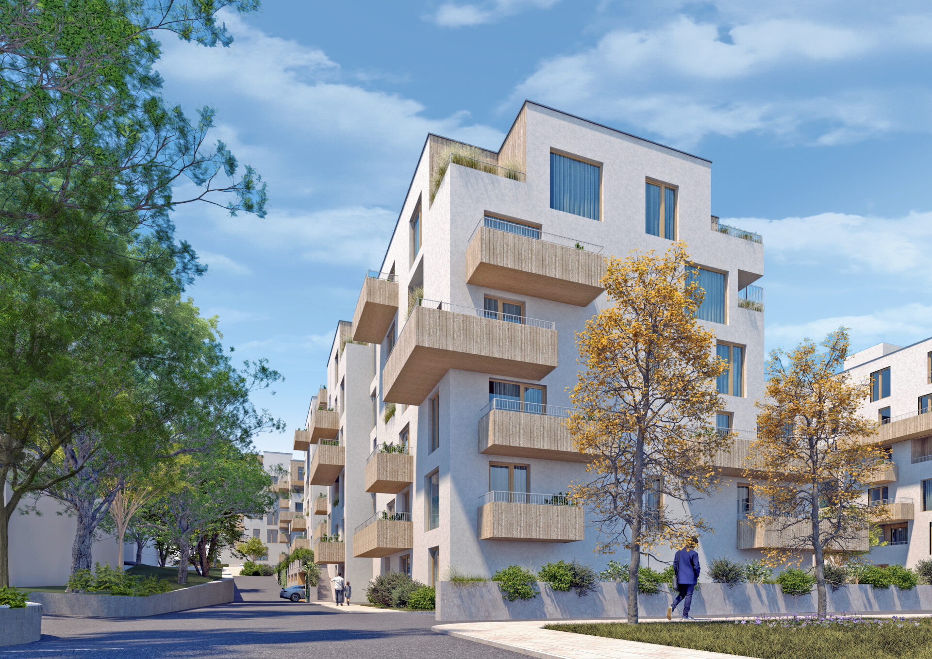Komplex tvoří bytové domy navazující na stávající městskou zástavbu a dopravní infrastrukturu. Navržené jsou v členité hmotové kompozici s moderním tvaroslovím. Domy osazeny na společné podzemní platformě garáží a technického podlaží. Urbanistické řešení klade důraz na propojení bydlení a venkovních prostor se sadovými úpravami v poloprivátním vnitrobloku.