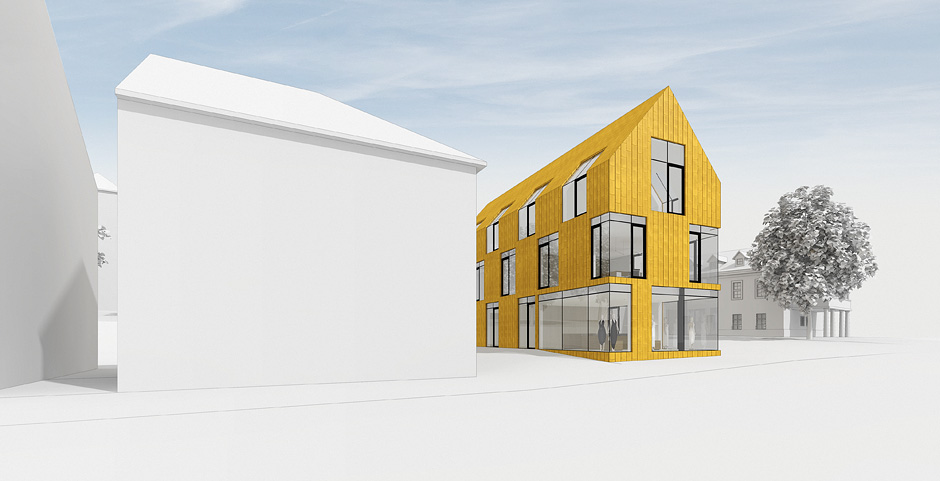 Koncept novostavby polyfunkčního domu řeší objekt na místě stávající stavby tzv. „hasičky“, která přímo navazuje na objekt muzea. Návrh pracuje s tradičním pojetím tvaru domu se štítem orientovaným do ulice. Hmota objektu vytváří třetí křídlo historického objektu a tím formuje prostor nádvoří, které je z jedné strany otevřeno do prostoru náměstí.