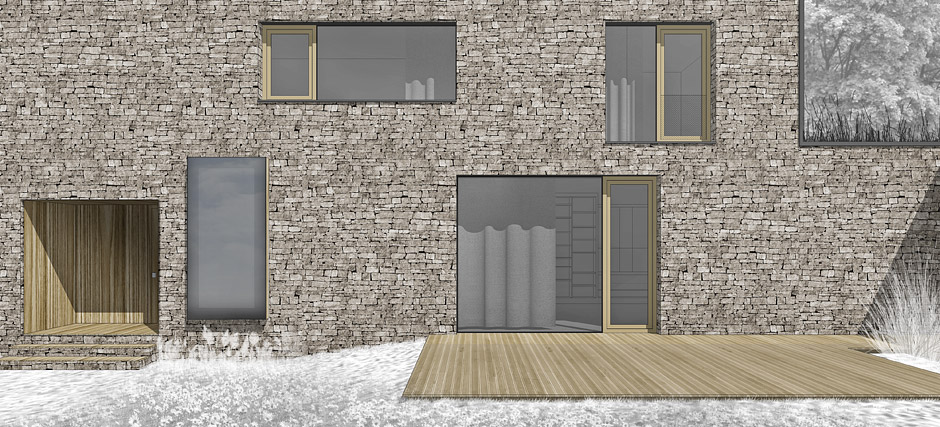 Přestavba rodinného domu z období po roce 1990 zásadním způsobem mění jeho tvar a materiálové řešení vnějších povrchů. Původní výrazná sedlová střecha s taškovou krytinou, trojúhelníkové vikýře a půlkulatý balkon jsou nahrazeny novým tvarem nebo odstraněny. Dům tím získává soudobý výraz. Původní dispozice je nahrazena novou, která odpovídá současným standardům. Koncept je zpracován v různých materiálových variantách.