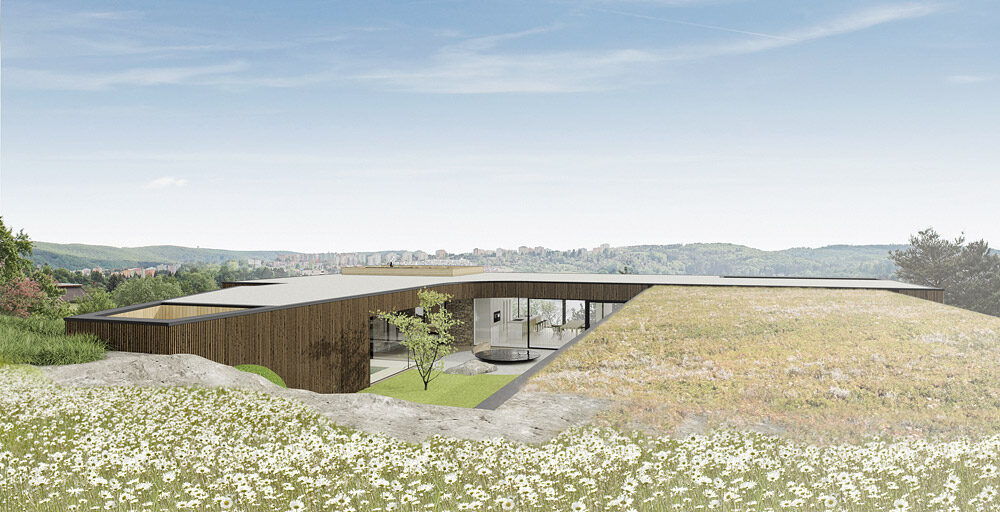 Objekt je tvarově jednoduchá hmota mající v úrovni 1.NP půdorysný tvar k východu otevřeného písmene U. Střešní rovina objektů plynule navazuje na stávající svažitý terén. Tím je vytvořeno ze tří stran pohledově chráněné atrium, do kterého jsou orientovány ubytovací a společenské prostory.