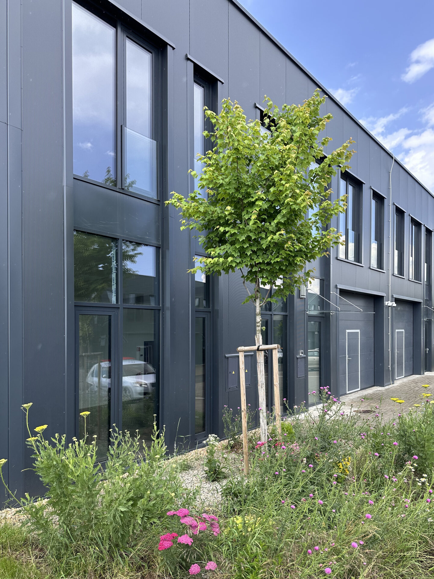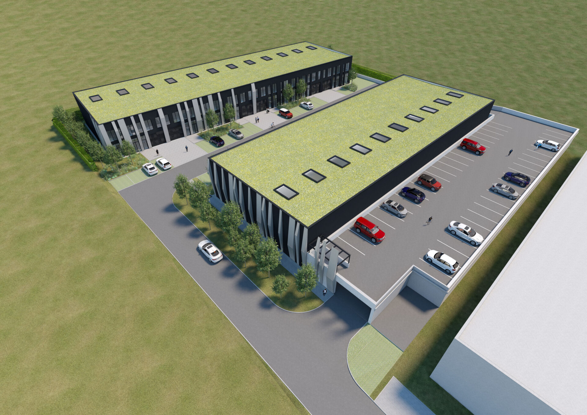 Areál tvoří dvě dvoupodlažní budovy s administrativními vestavbami a přímým napojením na skladovací a výrobní zóny. Architektura stavby je jednoduchá a funkční, s tmavou fasádou a velkoformátovými okny, které zajišťují dostatek přirozeného světla.